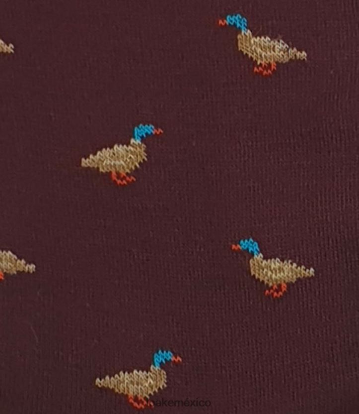 Calcetines loake premium con estampado de patos sobre fondo burdeos. estos accesorios loake son perfectos como calcetín de todos los días, o incluso como regalo.
