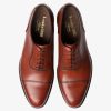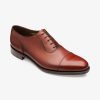 Zapato oxford de primera calidad con puntera. evans usa la horma bala para una forma de punta redondeada contemporánea y está disponible en cuero de becerro negro, conker y marrón oscuro. evans cuenta con forros curtidos al vegetal y está fabricado en Inglaterra.