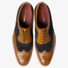 Zapato brogue bicolor confeccionado en pieles de becerro y ante en contraste, con suela soldada goodyear, con un acabado de borde natural. thompson está hecho en india.