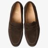 Zapato tipo mocasín tipo delantal clásico, elaborado en piel serraje en color marrón oscuro. la serie 300 se beneficia de la espuma viscoelástica que absorbe los golpes, la plantilla flexible, el soporte adicional para el arco y las suelas de goma soldadas Goodyear para una mayor durabilidad y longevidad. el modelo 356 está disponible en un ancho f con nuestra horma de sillín y está fabricado en india.