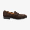 Zapato tipo mocasín tipo delantal clásico, elaborado en piel serraje en color marrón oscuro. la serie 300 se beneficia de la espuma viscoelástica que absorbe los golpes, la plantilla flexible, el soporte adicional para el arco y las suelas de goma soldadas Goodyear para una mayor durabilidad y longevidad. el modelo 356 está disponible en un ancho f con nuestra horma de sillín y está fabricado en india.