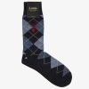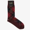Calcetines de loake de primera calidad con un patrón de fondo a cuadros en oporto, rojo y azul marino. estos accesorios loake son perfectos como calcetín de todos los días, o incluso como regalo.
