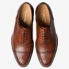 Zapato semi-brogue premium, disponible en piel de becerro bruñida caoba o burdeos y becerro negro. strand usa la última forma mayúscula en una f y está fabricado en Inglaterra.