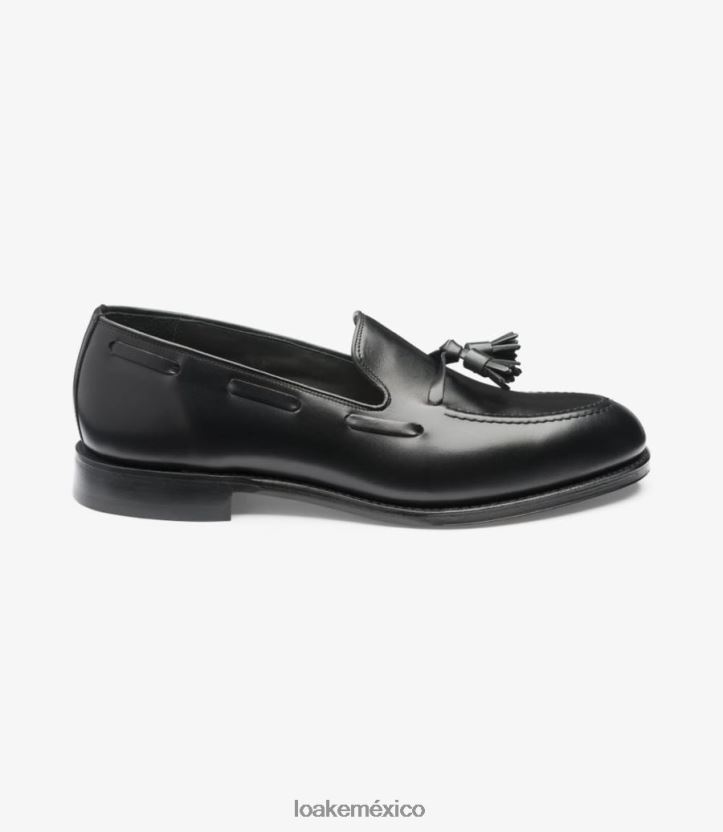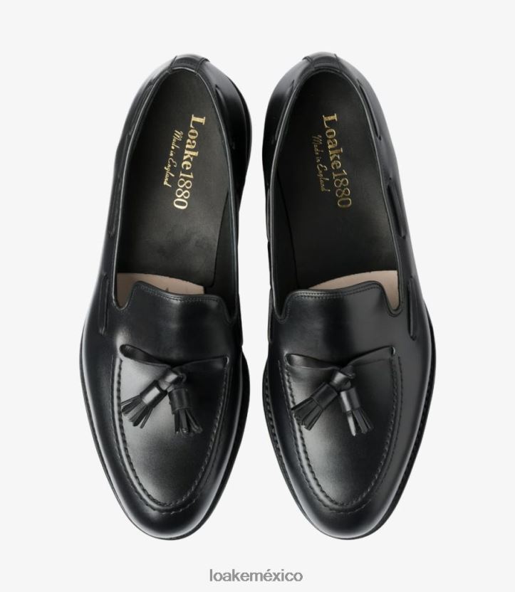 Diseño clásico de mocasín con borlas, russell cuenta con piel de becerro negra y suela de cuero cosido Goodyear. russell utiliza nuestra nueva horma ‘universitaria’ y está fabricada en Inglaterra.